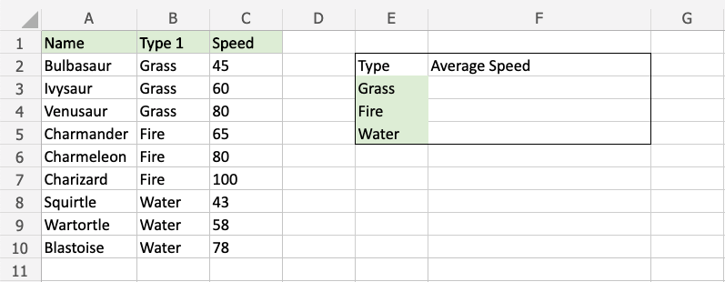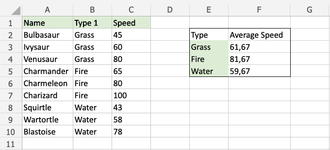 The function now calculates the average speed value of the Grass type Pokemon: Bulbasaur, Ivysaur and Venusaur.