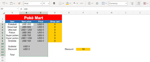 Note: Coloring the input fields can be helpful for those who will use the spreadsheet. In this case we marked the input fields with the yellow color: ffcb05.