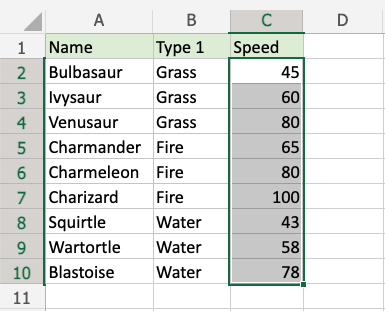 Add icons to the Speed values of each Pokemon with Icon Set conditional formatting.