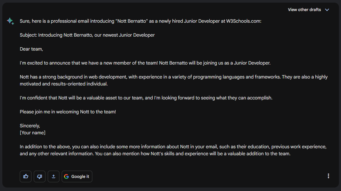 Now, you can continue to refine this draft and make it your own. But Bard gave us a good starting point.