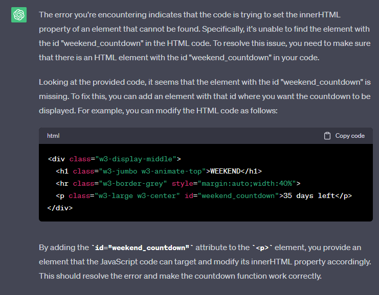 Last chapter, we got ChatGPT to write us some code for a web page. Now we have added a new design to the page, and the code no longer functions: