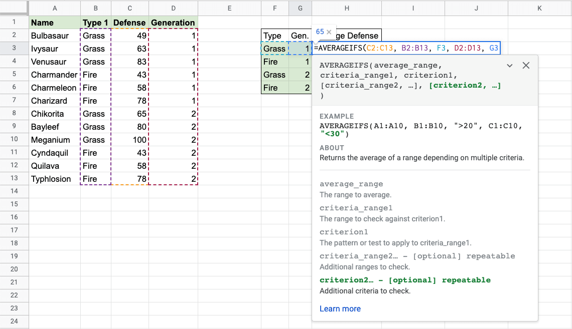 Google Sheets AVERAGEIFS Function