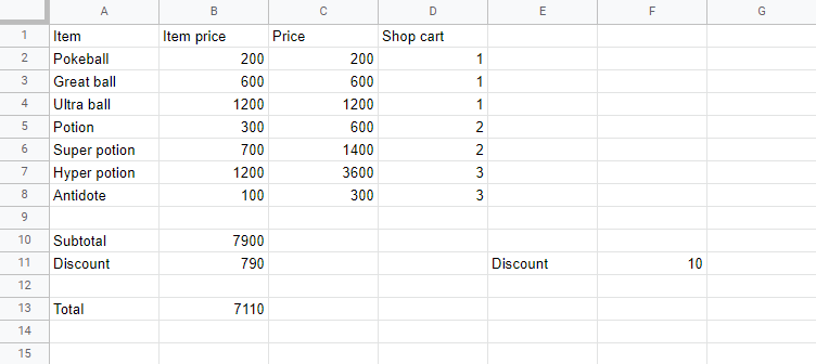 In the example we have cells that represent prices, which can be formatted as Currency.