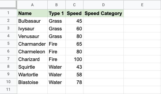 Make categories for how fast the Pokemon are: