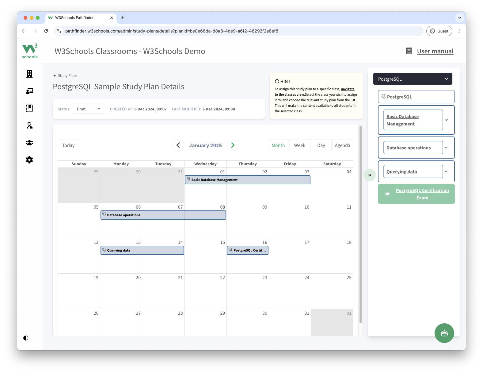 The PostgreSQL study plan helps you teach your students PostgreSQL step-by-step.