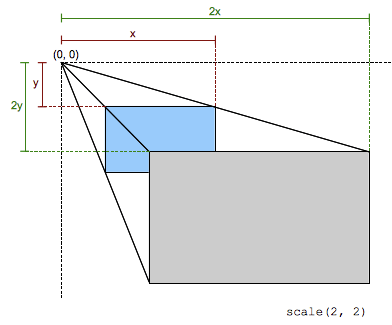 A função scale() é especificada com um ou dois valores, que representam a quantidade de redimensionamento a ser aplicada em cada direção.