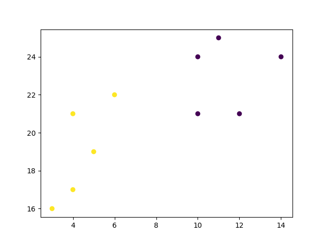 y = [21, 19, 24, 17, 16, 25, 24, 22, 21, 21]